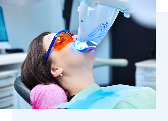 オフィスホワイトニングは、専用の薬剤とライトを