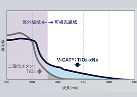 二酸化チタンの酸素の一部が 窒素に置換されることで、可視光線域の光にも充分反応するため、歯科用照射器を用いたオフィスホワイトニングへの応用が可能!