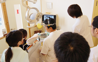 宝歯会には多くの患者様に毎日来院して頂いております。保存、補綴、小児、外科などの一般診療はもちろんの事、インプラント等の専門医療まで数多くの症例を経験できます。また、少子高齢化時代を迎え、訪問歯科診療を経験する事は歯科医師にとって将来のステップアップにつながります。